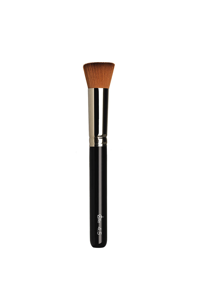 Brocha para la aplicación de bases líquidas y en crema, ideal para acentuar rasgos faciales y cubrir pequeños espacios difíciles de alcanzar. Tiene forma redonda plana, su férula es de latón niquelado y su mango de madera lacrada en negro. Material de cerdas sintéticas extra fina, lo que aporta suavidad a la hora de la aplicación.