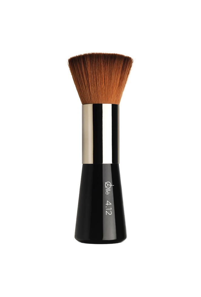 Brocha ideal para la aplicación de bases líquidas, en crema, polvos compactos y polvos sueltos. Tiene forma redonda plana, su férula es de latón niquelado y su mango de madera lacrada en negro. Material de cerdas sintéticas extra fina, lo que aporta suavidad a la hora de la aplicación.