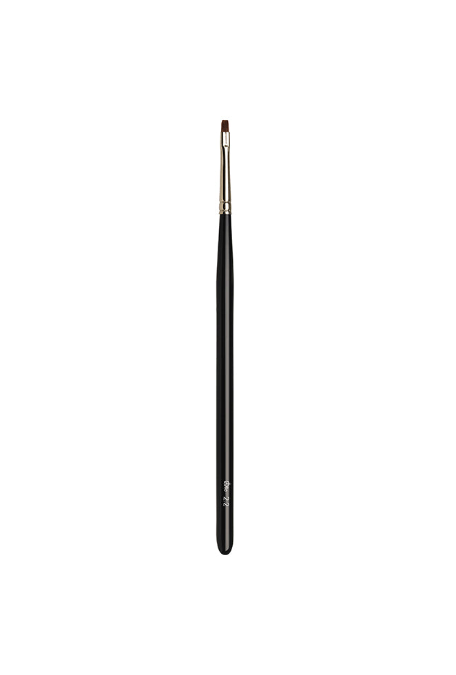 Brocha para delineados de ojos precisos. Tiene forma plana, su férula es de laton niquelado, su mango es de madera lacada en negro, material de cerdas sintético extra fino.