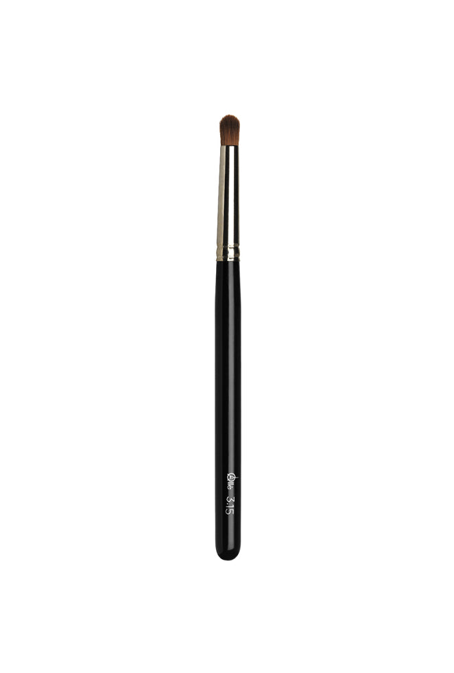 Brocha para sombras en polvo y en crema ideal para definir la profundidad del ojo y aportar luminosidad en el arco de la ceja, lagrimal y realizar trazos suaves. Tiene forma redonda, su férula es de aluminio, su mango es de madera lacada en negro. Material cerdas de sable rojo.