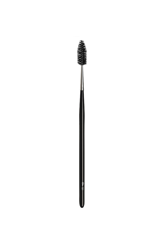 Brocha para la aplicación de mascara y para peinar las pestañas. Tiene forma redonda su férula es de latón niquelado, su mango es de madera lacada en negro. Material de cerdas sintéticas en negro, lo que aporta suavidad a la hora de la aplicación.